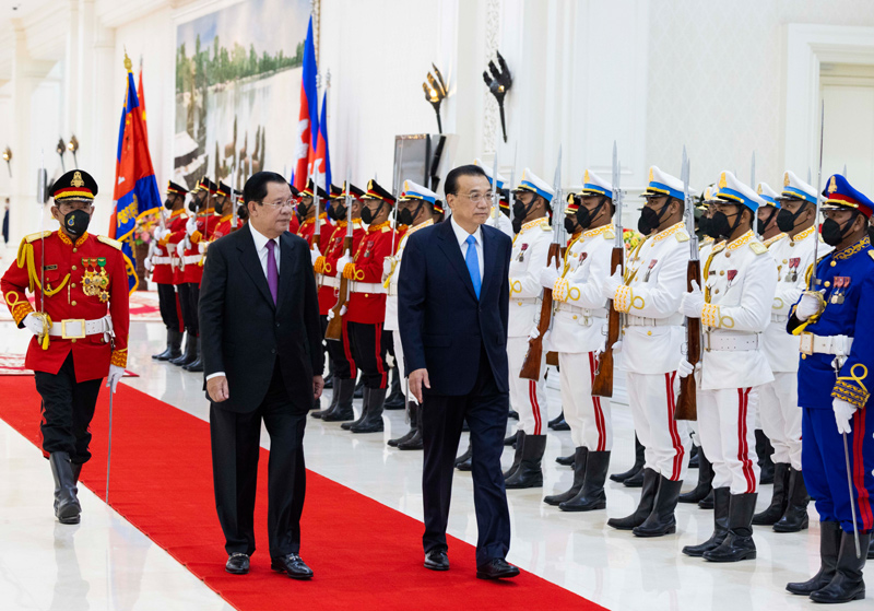 李克強(qiáng)表示,中柬傳統(tǒng)友誼深厚,擁有高度政治互信,各領(lǐng)域務(wù)實(shí)合作成果豐碩。習(xí)近平主席2016年成功訪問(wèn)柬埔寨,2020年為莫尼列太后頒授“友誼勛章”,為兩國(guó)友好再續(xù)新的篇章。首相先生是新冠肺炎疫情突發(fā)之際首位訪華的外國(guó)領(lǐng)導(dǎo)人,給中國(guó)人民留下深刻印象。疫情發(fā)生近三年來(lái),我首次出訪即到金邊出席東亞合作領(lǐng)導(dǎo)人系列會(huì)議并正式訪問(wèn)柬埔寨,感到非常高興。中方祝賀柬經(jīng)濟(jì)社會(huì)取得新的發(fā)展。中方一向主張大小國(guó)家一律平等,各國(guó)都遵守聯(lián)合國(guó)憲章宗旨原則,支持柬方走符合本國(guó)國(guó)情的發(fā)展道路,支持柬在國(guó)際和地區(qū)舞臺(tái)發(fā)揮更加重要的作用,愿同柬方密切高層交往與溝通,在涉及彼此核心利益和重大關(guān)切問(wèn)題上相互支持,推動(dòng)中柬全面戰(zhàn)略合作伙伴關(guān)系持續(xù)健康發(fā)展,更好造福兩國(guó)人民。